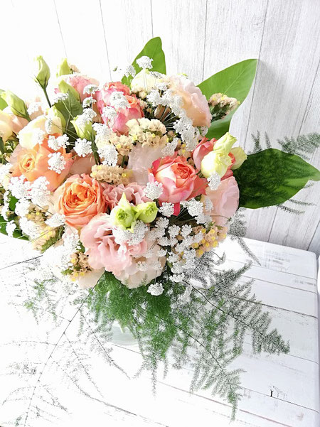 優しい色のトルコキキョウを合わせました