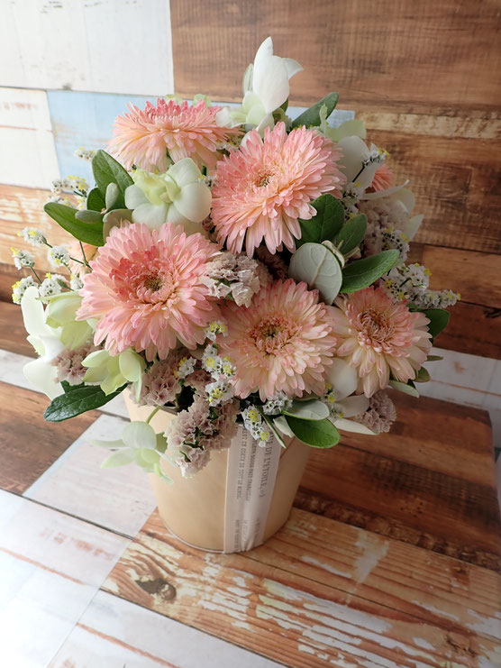 work · 2025/08/26 寄り添う花のアレンジメント 御命日に 毎年ご注文を いただいている 御供のアレンジメント です 今年もご依頼 いただきまして どんなお花にしようかと 過去画像を見てみますと そう言えば ピンク系が 今までなかったなと… ということに 気づきまして 今回は 優しいピンク色を 入れて お作りさせて いただきました 使用した花材は ガーベラ デンファレ スターチス HBスターチス フェイジョア です お気持ちに 寄り添うお花と なりますように いつもご依頼 ありがとうございます tagPlaceholderカテゴリ: